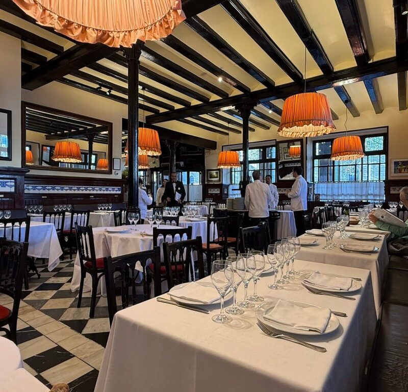 Dining rooms retain a sense of old Barcelona, supported by dark wood, framed photographs, and servers who move with quiet confidence.